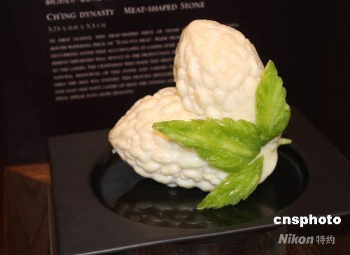 故宮重寶“肉形石”,原為瑪瑙類礦物精品。作為“國寶宴”上的一道主菜,則選用上等的蹄膀肉,先入鍋鹵約二至三小時,靜置冷卻后再用刀工雕出外型。