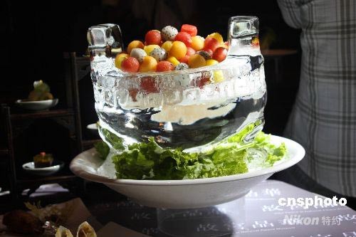 主廚仿照西周晚期的“毛公鼎”造型制作成冰雕,晶亮剔透的“鼎”中 ,盛裝著臺灣的特產(chǎn)水果,給人視覺與味覺的驚喜。
