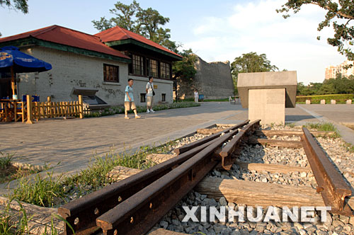 這是北京明城墻遺址公園內(nèi)的京奉鐵路信號所和正陽門至東便門的一段鐵軌(7月6日攝)。 |