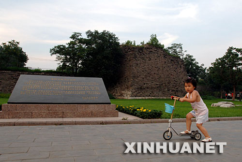 一名小朋友在北京明城墻遺址公園內(nèi)玩耍(7月7日攝)。 |