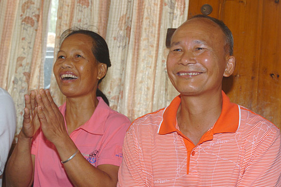 現(xiàn)在奧運(yùn)冠軍陳?ài)葡嫉淖畲笮脑妇褪腔丶!拔叶純赡隂](méi)有回家了!”她迫不及待地說(shuō)。父母做的可口飯菜,屋外的香蕉林以及家鄉(xiāng)特有的溫馨氣息在這兩年里是陳?ài)葡家恢笨M繞在心頭的記憶。 下圖為8月9日,在陳?ài)葡嫉募依铮窍陆鹋坪竽赣H(左)大聲叫好,而父親陳細(xì)泉(右)終于露出了笑容。 新華社記者