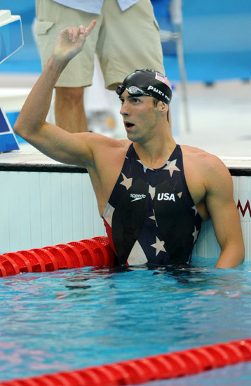 在男子200米自由泳決賽中,菲爾普斯獲得自己在北京奧運(yùn)會(huì)上的第三枚金牌,并第三次打破世界紀(jì)錄。菲爾普斯打破世界紀(jì)錄的成績(jī)是1分42秒96,原紀(jì)錄是他本人在去年世錦賽上創(chuàng)造的。 已經(jīng)擁有400米自由泳金牌的樸泰桓獲得銀牌,美國(guó)選手范德凱伊獲得銅牌。 這場(chǎng)決賽結(jié)束后約一個(gè)小時(shí),菲爾普斯又參加了男子200米蝶泳的半決賽,以第一名的身份挺進(jìn)明天的決賽。中國(guó)選手吳鵬獲得第二名。