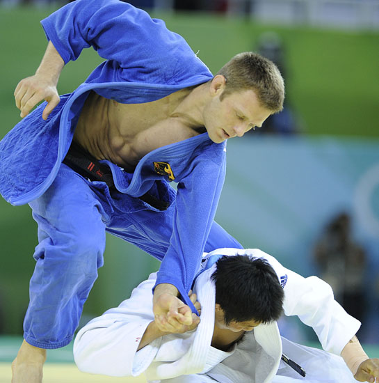 8月12日,在北京奧運(yùn)會(huì)柔道男子81公斤級(jí)決賽中,德國(guó)選手奧勒·比朔夫戰(zhàn)勝韓國(guó)選手金宰范,奪得冠軍。