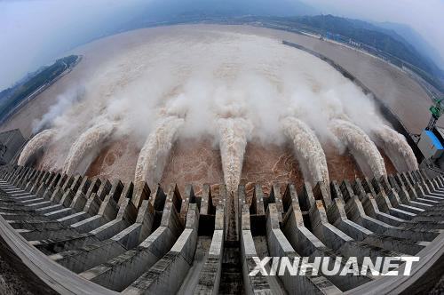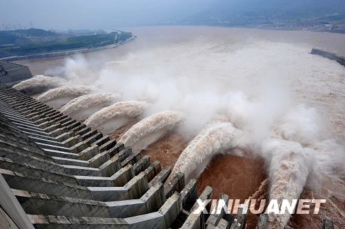 8月13日,洪水通過三峽大壩下泄。