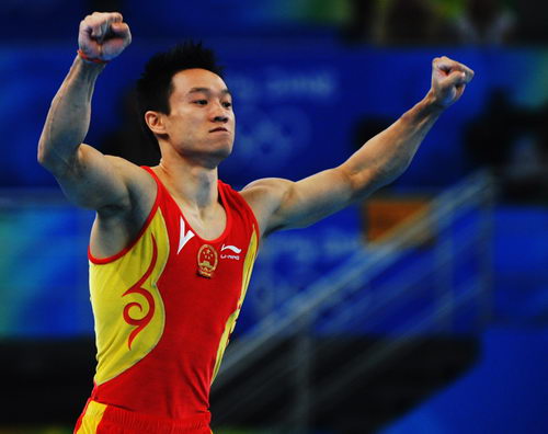 在今天上午11:00國家體育館進(jìn)行的北京奧運(yùn)會(huì)體操男子個(gè)人全能決賽中,隨著日本選手內(nèi)村航平和富田洋之以及德國選手漢布?xì)J在開局階段的相繼失誤,楊威憑借著穩(wěn)定的發(fā)揮以94.575分奪得了北京奧運(yùn)會(huì)體操男子個(gè)人全能的金牌,本屆奧運(yùn)會(huì)已經(jīng)決出的三枚體操金牌全部被中國獲得,這也是中國代表團(tuán)在本屆奧運(yùn)會(huì)上獲得的第20枚金牌。在收獲了首枚個(gè)人項(xiàng)目的奧運(yùn)金牌之后,楊威了實(shí)現(xiàn)了自己在全能項(xiàng)目的“大滿貫”。日本選手內(nèi)村航平憑借著后面的穩(wěn)定發(fā)揮一路趕超最終獲得一枚銀牌,成績?yōu)?1.975分,法國選手伯努瓦-卡拉諾布以91.925分摘得銅牌。 在12日如愿拿到北京奧運(yùn)會(huì)體操男子團(tuán)體冠軍的中國體操隊(duì)主將、“三朝元老”楊威已經(jīng)拿過世錦賽冠軍、亞運(yùn)會(huì)冠軍,此番出戰(zhàn),楊威希望能收獲首枚個(gè)人項(xiàng)目的奧運(yùn)金牌實(shí)現(xiàn)全能項(xiàng)目的“大滿貫”。此外,中國選手陳一冰也以資格賽第七的身份成功入圍,以穩(wěn)定見長的他將為楊威的奪冠起到保駕護(hù)航的作用。 為了一枚奧運(yùn)全能金牌,楊威已經(jīng)等待了太久。1996年奧運(yùn)會(huì)上,李小雙為中國首奪男子個(gè)人全能金牌。2000年悉尼奧運(yùn)會(huì)上,楊威不敵俄羅斯名將涅莫夫奪得銀牌。2004年雅典奧運(yùn)會(huì),當(dāng)時(shí)奪金呼聲很高的楊威在單杠中掉杠,僅列個(gè)人全能第七。 在今天比賽中,中國選手楊威與日本選手富田洋之、內(nèi)村航平和韓國選手金大恩、德國選手漢布?xì)J、俄羅斯選手謝爾蓋-霍羅霍金同分在一個(gè)小組,將按照自由體操、鞍馬、吊環(huán)、跳馬、雙杠和單杠的順序依次完成比賽。楊威在第一個(gè)項(xiàng)目自由操比賽中排在第四個(gè)出場,他的全套動(dòng)作都發(fā)揮得不錯(cuò),只是在其中一個(gè)轉(zhuǎn)體動(dòng)作完成后有一個(gè)踩線被扣掉了0.1分,最終在這個(gè)項(xiàng)目上楊威得到了15.250分,排在了日本選手內(nèi)村航平和德國選手漢布?xì)J之后。中國另外一名選手陳一冰在鞍馬項(xiàng)目上出現(xiàn)重大失誤掉下器械,最終只得到了13.750。第一項(xiàng)比賽完成后,楊威在總分上排名第10位,陳一冰排在第23位,法國選手托馬-布艾爾、日本選手內(nèi)村航平和英國選手丹尼爾-基廷斯分列前三位。 在第二項(xiàng)鞍馬的比賽中,依舊是內(nèi)村航平第一個(gè)出場,在這個(gè)項(xiàng)目上他出現(xiàn)了重大失誤,兩次掉下了器械,最終僅得到了13.275分。第三個(gè)出場的楊威并沒有受到前面選手掉下器械的影響,以穩(wěn)定的發(fā)揮贏得了15.275分,隨后出場的富田洋之也以穩(wěn)定的發(fā)揮贏得了15.425分。在另外一塊場地同時(shí)進(jìn)行的吊環(huán)比賽中,中國選手陳一冰以一套近乎于完美動(dòng)作完成了比賽并得到了16.650的高分。第二輪比賽結(jié)束后,中國選手楊威在總分上以30.525分上升至第8位,富田洋之以相同的分?jǐn)?shù)排名第7位,中國選手陳一冰以30.400分排名第10位。德國選手漢布?xì)J和日本選手內(nèi)村航平則跌出前10位。 在第三項(xiàng)吊環(huán)的比賽中,漢布?xì)J在比賽中出現(xiàn)了一個(gè)大的晃動(dòng),不過可貴的是在動(dòng)作完成后他的落地則穩(wěn)如泰山,最終他在這個(gè)項(xiàng)目上獲得了15.025的分?jǐn)?shù)。隨后出場的楊威整套動(dòng)作完成得行云流水得到了16.625的高分。最后一個(gè)出場的富田洋之在吊環(huán)中也出現(xiàn)了重大失誤,在吊環(huán)的下法上完全失控摔在了墊子上,僅得到了13.850分。在第三輪比賽結(jié)束后,中國選手楊威已經(jīng)以47.150的總分躍居第一位,陳一冰以46.300分位列第三位。 第四項(xiàng)跳馬的比賽中,第一個(gè)出場的漢布?xì)J的動(dòng)作難度為6.6,整套動(dòng)作的空中控制得相對不錯(cuò),只是在落地時(shí)有一個(gè)大跨步并出了邊線,跳馬動(dòng)作上他得到了15.975分,漢布?xì)J在完成后表情凝重顯然對自己的發(fā)揮不是很滿意。隨后出場的楊威選擇了一個(gè)難度系數(shù)為7.0的動(dòng)作,雖然落地時(shí)跨出了一小步,不過最終他還是贏得了16.550分。韓國選手梁泰榮憑借著在雙杠項(xiàng)目中的穩(wěn)定發(fā)揮躍居第二位,總成績?yōu)?2.075分。陳一冰在雙杠項(xiàng)目上得到了14.950分,排名下降至第五位。 第五項(xiàng)雙杠比賽中,楊威第一個(gè)出場,整套動(dòng)作完成得有驚無險(xiǎn),在落地時(shí)向后挪動(dòng)了一小步,最終得到了16.100分,這樣在吊環(huán)、跳馬和雙杠三個(gè)項(xiàng)目中,楊威的得分都達(dá)到了16.000分以上,這也使得他進(jìn)一步鞏固了排名第一的位置。排在第二位的韓國選手梁泰榮雖然在自由體操上有著出色的發(fā)揮,不過由于難度不夠最終得到了15.225分,這樣在總分上他以77.300分依舊排在第二位,不過已經(jīng)落后于排名第一的楊威2.5分。中國選手陳一冰在單杠項(xiàng)目中出現(xiàn)失誤,最終僅獲得12.975分徹底退出了獎(jiǎng)牌的爭奪。 最后一項(xiàng)單杠比賽中,楊威最后一個(gè)出場,雖然出現(xiàn)了一點(diǎn)小小的失誤,不過他還是圓滿完成了最后一個(gè)動(dòng)作,在“弱項(xiàng)”單杠的比賽中獲得了14.77