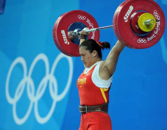 中國(guó)女將本屆奧運(yùn)會(huì)第四次站在舉重賽場(chǎng)的最高領(lǐng)獎(jiǎng)臺(tái)上。曹磊在女子舉重75公斤級(jí)比賽中摘得的這枚金牌,是中國(guó)女舉第一次在這個(gè)級(jí)別摘得奧運(yùn)會(huì)金牌,同時(shí)也實(shí)現(xiàn)了中國(guó)女舉在奧運(yùn)會(huì)上奪金的“滿貫”——至此中國(guó)女舉已經(jīng)獲得過奧運(yùn)會(huì)所有級(jí)別的冠軍。 15日的比賽再次毫無(wú)懸念。和自己的三名隊(duì)友一樣,曹磊在抓舉比賽結(jié)束后已經(jīng)基本鎖定勝局。最終她282公斤的總成績(jī)高出第二名16公斤之多,同時(shí),她還將該級(jí)別奧運(yùn)會(huì)三項(xiàng)紀(jì)錄都寫上了自己的名字,其中兩次刷新總成績(jī)紀(jì)錄。不過,她最終沒能刷新世界紀(jì)錄。 “最后一把我不太專注,因?yàn)槲液鋈幌氲饺ナ啦痪玫膵寢尅!辟惡笤诨旌蠀^(qū)面對(duì)記者采訪時(shí),胸前掛著“金鑲玉”金牌的曹磊泣不成聲,“這塊金牌,我要獻(xiàn)給我的祖國(guó)人民和我的母親! 中國(guó)女隊(duì)總教練馬文輝告訴記者,在名單公布后,他想了又想,還是決定告訴曹磊她母親去世的消息,“我想她有這個(gè)承受能力,我們不能瞞她! 俄羅斯選手娜·葉夫斯秋欣娜15日的表現(xiàn)一般,這位2007年世錦賽銅牌得主抓舉成績(jī)僅為117公斤,不到一年前,她曾舉起128公斤的重量。曹磊出場(chǎng)時(shí),所有對(duì)手都已經(jīng)結(jié)束了比賽,曹磊三次試舉全部成功,最終成績(jī)?yōu)?28公斤,這比第二位的哈薩克斯坦選手阿·瓦熱寧娜多了9公斤,也創(chuàng)造了新的抓舉奧運(yùn)會(huì)紀(jì)錄。 瓦熱寧娜和葉夫斯秋欣娜選擇了為銀牌而戰(zhàn),這讓曹磊的奪冠沒有了意外的可能。將開把重量從155公斤降到147公斤并成功舉起后,曹磊實(shí)際上已經(jīng)穩(wěn)獲金牌,同時(shí),她還打破了總成績(jī)的奧運(yùn)會(huì)紀(jì)錄。瓦熱寧娜和葉夫斯秋欣娜最后一把都舉起147公斤,最終以266公斤和264公斤分列二三位。 挺舉第二把154公斤,曹磊再次刷新了挺舉和總成績(jī)奧運(yùn)會(huì)紀(jì)錄。 最后一把曹磊要了159公斤,這個(gè)重量和挺舉世界紀(jì)錄持平,但如果舉起,曹磊將刷新總成績(jī)世界紀(jì)錄。不過,曹磊最終沒能舉起這一重量,最終以282公斤的總成績(jī)奪冠。 這是中國(guó)舉重隊(duì)本屆奧運(yùn)會(huì)獲得的第七枚金牌,這個(gè)數(shù)字再次刷新了舉重隊(duì)奧運(yùn)會(huì)最好戰(zhàn)績(jī)。同時(shí),這也是中國(guó)女隊(duì)繼2000年悉尼奧運(yùn)會(huì)后再次“包攬”所參加級(jí)別的四枚金牌!拔覀冏鲞^最壞的準(zhǔn)備,這四場(chǎng)比賽我們每場(chǎng)都已盡心盡力!瘪R文輝總結(jié)說(shuō)。 而本屆奧運(yùn)會(huì)上獲得48公斤級(jí)和75公斤級(jí)金牌,也讓中國(guó)女隊(duì)享有了另一項(xiàng)榮譽(yù)——三屆奧運(yùn)會(huì),十一枚金牌,女子所有級(jí)別的金牌拿了個(gè)遍。