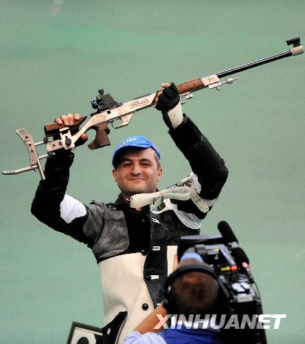 8月15日,烏克蘭選手阿爾圖爾·艾瓦江賽后慶祝勝利。當日,在北京奧運會射擊男子50米步槍臥射比賽中,烏克蘭選手阿爾圖爾·艾瓦江以702.7環(huán)的成績獲得冠軍。