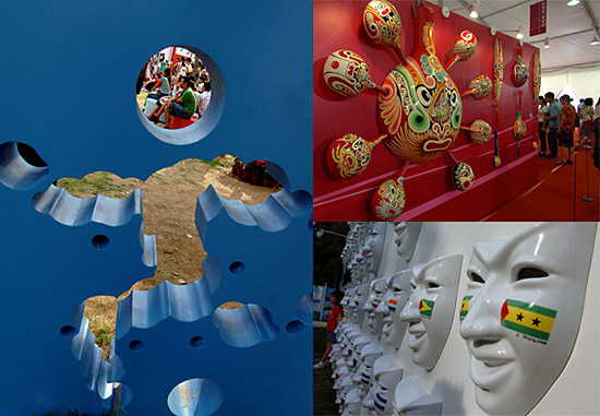 奧運文化廣場的重頭戲有兩塊:一是場地的選擇和布置,二是文藝演出和文化展示的組織安排。 據(jù)張遷介紹,奧運文化廣場的選址工作是從去年3月開始的。當時,北京市文化局向各區(qū)縣政府發(fā)出了關(guān)于商定2008年北京奧運會城市文化廣場的公函。在得到各區(qū)縣政府的回復(fù)意見后,北京市奧組委、市文化局、廣電局、公安局等部門共同對推薦上來的廣場進行了實地考察。 這次選址參照了2007年北京舉行的“體驗中國”奧運文化廣場的標準,首先對場地容積設(shè)了兩道數(shù)字底線,一是面積要在2000平方米以上,二是同時可供1000人以上開展群體活動。除此之外,奧運文化廣場還被要求距離居民區(qū)較近,交通便利,設(shè)施安全,配套設(shè)施比較完善,能夠擺放大屏幕,供群眾觀看體育賽事,同時配備固定的演出舞臺或能搭建臨時舞臺,為表演團隊提供必要的配套服務(wù)。選址團隊還強調(diào)了兩個特色,一是廣場建筑要有地區(qū)或民族特色,二是文化活動要主題鮮明,要顯示出中國特色。 最后,20多個符合各項要求的奧運文化廣場被初步篩了出來。 統(tǒng)一而醒目的景觀環(huán)境,有力地彰顯出文化廣場的奧運身份,是本屆奧運文化廣場活動的一大亮點。 北京奧運文化廣場活動項目負責(zé)人張遷評價說,這是北京舉辦文化廣場活動以來的一項重大收獲,相當于建立了一套專屬于文化廣場活動的CIS(企業(yè)識別系統(tǒng)),從營銷角度看,這對今后提升文化廣場的關(guān)注度和凝聚力都大有好處。 “以往的文化廣場,雖然在名稱上是統(tǒng)一的,但在景觀布置方面基本上屬于各區(qū)縣各干各的,你在天上放倆氣球,我在門口搭一個充氣的彩虹門,效果好一些的也就是背板的圖案是一樣的”,張遷說,“這次已經(jīng)開放的26個文化廣場在視覺上則是相對統(tǒng)一的,包括刀旗、背板、指示牌在內(nèi)的所有景觀道具都是我們根據(jù)北京奧組委景觀部提供的基本素材而統(tǒng)一制作的,再加上活動理念的高度統(tǒng)一以及基本相同的運作模式,這就形成了一個相對完整的識別系統(tǒng),就像麥當勞的大‘M’一樣,讓人過目不忘。”