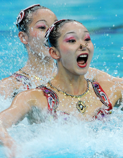 北京奧運(yùn)會(huì)花樣游泳比賽18日下午開(kāi)賽,在首日進(jìn)行的雙人預(yù)賽技術(shù)自選比賽中,有三支隊(duì)伍都派出“姊妹花”參賽。除了中國(guó)的雙胞胎組合蔣文文、蔣婷婷外,還有新西蘭的一對(duì)姐妹和荷蘭的一對(duì)雙胞胎。 三對(duì)姐妹中,最先出場(chǎng)的是新西蘭選手——26歲的尼娜·丹尼爾斯和23歲的麗莎·丹尼爾斯。她們完成了一套名叫《烏克蘭人》的動(dòng)作,得分列24對(duì)選手中的第23位。 “我們覺(jué)得今天表現(xiàn)不錯(cuò),”姐姐尼娜賽后說(shuō),“這是24年來(lái)新西蘭第一次參加奧運(yùn)會(huì)花游比賽,我們希望能夠推動(dòng)這項(xiàng)運(yùn)動(dòng)在新西蘭的發(fā)展。” 荷蘭選手比安卡·范德費(fèi)爾登和索尼婭·范德費(fèi)爾登是一對(duì)雙胞胎,她們選擇了雄壯的合唱曲《布蘭詩(shī)歌》為自己伴奏,整個(gè)表演蕩氣回腸,最終名列第十!拔覀兊谋憩F(xiàn)跟音樂(lè)一樣棒,我們教練很開(kāi)心!北劝部ㄔ谫惡笳f(shuō)。 中國(guó)選手蔣文文/蔣婷婷的最后得分列第四位!拔医裉煸诮Y(jié)束動(dòng)作的時(shí)候重心不穩(wěn),有點(diǎn)小紕漏,不過(guò)明天肯定會(huì)有所提高。”蔣文文賽后說(shuō)。蔣婷婷也說(shuō):“沒(méi)關(guān)系,明天肯定會(huì)更好,我們有信心!