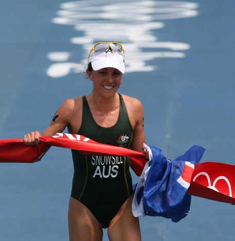 8月18日,北京奧運(yùn)會(huì)鐵人三項(xiàng)女子組決賽在北京十三陵水庫舉行,澳大利亞選手斯諾西爾奪得金牌。