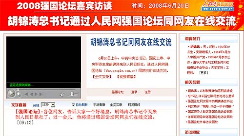 人民網(wǎng)直播胡錦濤總書(shū)記與網(wǎng)友在線交流(網(wǎng)頁(yè)截屏)