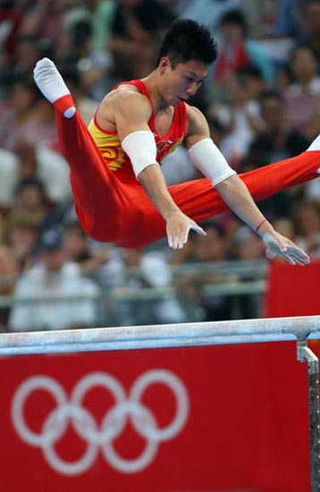 今天晚上在國家體育館進(jìn)行了最后一個(gè)體操單項(xiàng)決賽日的爭奪,在首先進(jìn)行的雙杠決賽中,中國選手李小鵬以完美的發(fā)揮得到了16.450分毫無懸念的奪得金牌,這也是中國代表團(tuán)在本屆奧運(yùn)會(huì)上獲得的第40金,同時(shí)也是中國體操隊(duì)在本屆奧運(yùn)會(huì)上獲得的第8塊金牌,也是他個(gè)人的第16個(gè)世界冠軍。李小鵬在今天順利奪得雙杠冠軍后,使他的奧運(yùn)會(huì)金牌數(shù)達(dá)到了4枚,他也成為了中國代表團(tuán)獲得奧運(yùn)會(huì)金牌最多的男選手。李小鵬在悉尼奧運(yùn)會(huì)上獲得男子團(tuán)體及雙杠兩枚金牌,在本屆奧運(yùn)會(huì)上再度獲得這兩項(xiàng)冠軍。目前在中國選手中,鄧亞萍、伏明霞、王楠、郭晶晶和李小鵬均獲得了四枚奧運(yùn)會(huì)金牌,在個(gè)人金牌榜上并列第一位。 韓國選手劉源哲以16.250分獲得一枚銀牌,烏茲別克斯坦的選手安東-福金獲得銅牌,成績?yōu)?6.200分。中國選手黃旭以15.700分排在第六位。 今天的雙杠比賽可謂高潮迭起,隨著德國小將漢布?xì)J的出場,場上的氣氛瞬間被點(diǎn)燃,他的一套動(dòng)作難度達(dá)到了6.9,雖然中間出現(xiàn)了一個(gè)多余的擺動(dòng),不過他仍舊以完美的發(fā)揮得到了15.975分。第四個(gè)出場的是2007年世錦賽雙杠銅牌得主、預(yù)賽中排名第三位烏茲別克斯坦的選手安東-福金,他的整套動(dòng)作都完成得十分出色,空中騰躍非常高,尤其是他的下法非常新穎,而且落地穩(wěn)如泰山,最終他贏得了16.200分超越了德國小將漢布?xì)J排名第一位。這也是已經(jīng)出場的四位選手中唯一一個(gè)得分超過16.000分的。