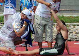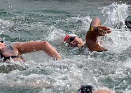 不像室內游泳比賽每個選手都有專門水道,馬拉松游泳選手們沒有屬于自己的賽道,她們擠在一起游泳難免碰手碰腳,搶占優(yōu)勢位置也很有講究。 在20日的女子馬拉松游泳比賽中,很多選手上岸后都在抱怨別人的不是。銅牌得主、英國選手帕滕在水中弄傷了腳,她說:“我身上的每個部位都疼,水里有一些拉人動作!苯鹋频弥鳌⒍砹_斯選手伊利琴科曾與兩位巴西選手并駕齊驅,她說:“這兩個人太有進攻性了,行為舉止接近非體育精神的邊緣,這是游泳,不是拳擊!