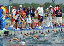 在20日上午進行的北京奧運會女子10公里馬拉松游泳比賽中,俄羅斯選手伊利琴科獲得冠軍,成為奧運會歷史上首個馬拉松游泳冠軍。 伊利琴科奪冠的成績是1小時59分27秒7。 10公里馬拉松游泳比賽是首次進入奧運會正式項目,設男、女兩個小項。北京奧運會的馬拉松游泳比賽在順義水上奧林匹克公園靜水水道進行,25名選手需要游四個來回。因為沒有賽道限制,選手必須學會在“混戰(zhàn)”中占據優(yōu)勢位置,并克服其他人的干擾。 伊利琴科在這個項目上具有超強實力。她雖然只有20歲,但是“野戰(zhàn)”經驗豐富、戰(zhàn)績輝煌,自2004年以來已經8次取得5公里、10公里馬拉松游泳世錦賽冠軍,堪稱馬拉松游泳界的“女皇”。 | |