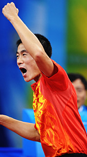 新華社北京8月21日奧運專電 北京奧運會乒乓球男子單打比賽中,用典型的“中國速度”,“國乒三虎”輕松戰(zhàn)勝對手晉級八強。
