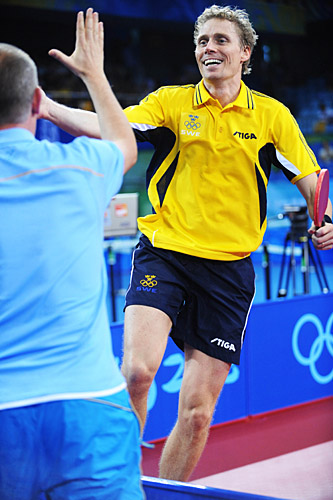 已經(jīng)42歲的佩爾森22日下午4:1擊敗39歲的普里莫拉茨,贏得了在北京奧運會乒乓球男子單打半決賽中與中國頭號種子王皓對陣的機會。 作為前瑞典“三駕馬車”之一,曾和乒壇“常青樹”瓦爾德內(nèi)爾并肩作戰(zhàn)多年的佩爾森在這場“六朝元老”之間的對決中又找回了過去的感覺,而他在開局落后時所表現(xiàn)出的韌性和耐性,更與雅典奧運會上還打進半決賽的瓦爾德內(nèi)爾如出一轍。 這場比賽最終戰(zhàn)成5局,比分是7:11、11:6、11:8、14:12、11:9。關鍵性的第四局中,佩爾森原本以10:5領先,卻被反手技術(shù)占優(yōu)的普里莫拉茨連扳6分,以11:10反超。此后,比賽在雙方均無失誤的情況下進入拉鋸戰(zhàn),而佩爾森最終證明自己是堅持得更久的那一個。 賽后佩爾森對自己的表現(xiàn)極為滿意:“我打得很好,進攻很主動,關鍵是我打了這么多年,很明白怎樣才能贏球,希望明天對王皓我也能發(fā)揮這么好,我知道我在北京有很多粉絲,也許沒老瓦那么多,但我會好好表現(xiàn)的。” 評價本輪對手時,佩爾森甚至開起了普里莫拉茨的玩笑:“我們已經(jīng)交手了這么多年,彼此之間都太了解了,我很高興自己能贏得這么艱苦的比賽,但又為老普難過,他7次試圖翻盤,可惜都沒成功! 對于“高齡”的質(zhì)疑,佩爾森很肯定地回答:“年齡不是問題,大家都看到了,我步伐很快,身體完全沒問題!钡攩柶鹚欠襁會參加四年后的倫敦奧運會時,這位年齡恰好與老瓦宣布退役時相同的老將說:“哦,是的,這將是我的最后一次奧運會了,我參加了有乒乓球以來的全部六屆奧運會,我想這夠了!彪m然不再參加奧運會了,但佩爾森表示,是否參加十月份歐洲錦標賽的問題,他還要回去和教練林德好好商量一下。 作為上世紀80年代末的世乒賽亞軍、90年代初的世界杯賽冠軍,佩爾森曾在2000年悉尼奧運會上擊敗風頭正勁的中國選手劉國正晉級,直到半決賽中負于后來奪冠的孔令輝,他才停住前進的腳步。 四年前老瓦在雅典殺進半決賽時就曾驚碎眾多眼鏡,如今同樣高齡的佩爾森即將對陣王皓,他能否取得超過老瓦的成就?佩爾森頗給自己留余地地說:“2003年的施拉格和2004年的柳承敏都搶了中國人的冠軍,但他們都沒長久,中國人還是統(tǒng)治乒壇。如今馬琳和王皓的反手都進步了不少,王勵勤也證明了他的反手很好,這對歐洲人來說會更難取勝。所以我說打破中國這面‘墻’是非常困難的,但也不是完全沒有可能。歷史上拿到奧運會男單冠軍的有兩個中國人、兩個韓國人,還有一個瑞典人,我想我還有機會! 輸了球的普里莫拉茨表現(xiàn)得仍然紳士,他祝賀佩爾森的同時也說:“他表現(xiàn)得很好,而我也不是很失望,因為這已經(jīng)是我的第六屆奧運會了,帶著這樣的成績回家,克羅地亞人會很高興!弊屗u價中國選手的實力,他說:“在乒乓球這個項目上,以前歐洲領先過,但看看現(xiàn)在,王勵勤的弧圈比我們更有力,步伐比我們更快,這很說明問題。” 距離佩爾森和普里莫拉茨的這場四分之一決賽開始還有半個小時的時候,十幾名身穿黃色球衫、手舉藍色黃十字國旗的瑞典奧運代表團成員,他們在看臺上做出各種有趣的助威動作,使北京大學體育館里自開賽以來第一次有了“加油”之外的異國歌聲,也為佩爾森和普里莫拉茨這場經(jīng)典之戰(zhàn)添加了色彩。