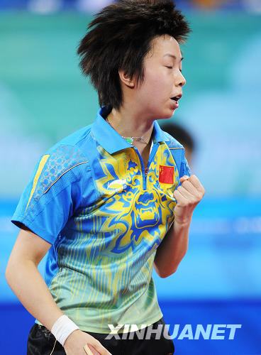 在22日晚舉行的北京奧運會乒乓球女單決賽中,中國隊的張怡寧擊敗隊友王楠,成功衛(wèi)冕女單冠軍。