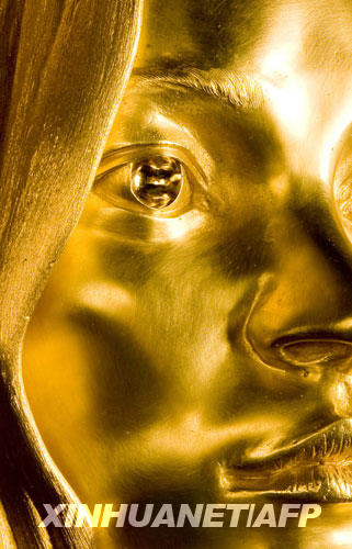 這張大英博物館8月28日提供的照片顯示的是英國超級模特凱特·摩斯的純金塑像。塑像名為“魅女”,純金鑄成,重50千克,價值280萬美元,由英國著名藝術(shù)家馬克·奎恩創(chuàng)作。這尊塑像定于2008年10月4日至2009年1月25日在大英博物館展出。 新華社/法新