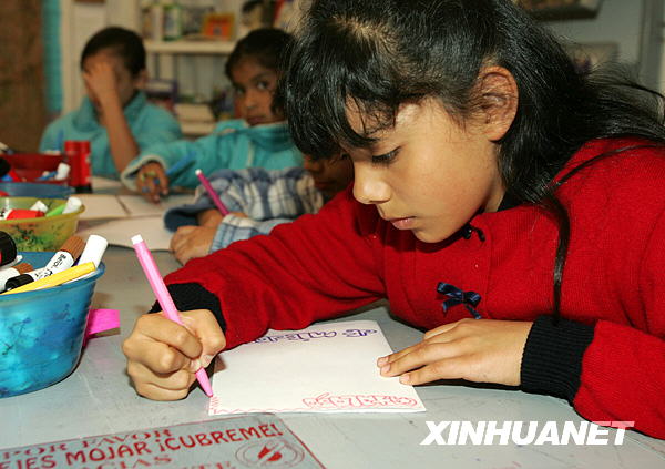 10月18日,一名女孩在墨西哥城舉辦的墨西哥第八屆圖書節(jié)上習(xí)字。本屆圖書節(jié)于10月10日開幕,19日閉幕,不僅展銷圖書,還舉辦兒童劇、手工剪紙、制陶、繪畫等各種活動(dòng),豐富了孩子們的生活。