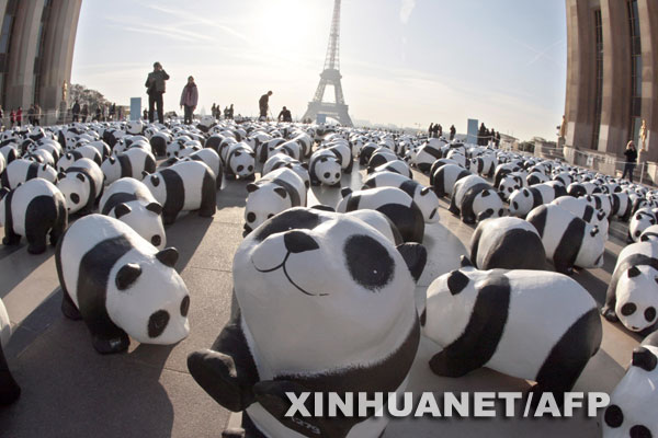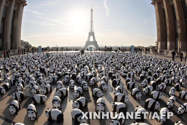 10月18日,在法國(guó)首都巴黎,1600只紙制熊貓被放置在廣場(chǎng)上供人們參觀。