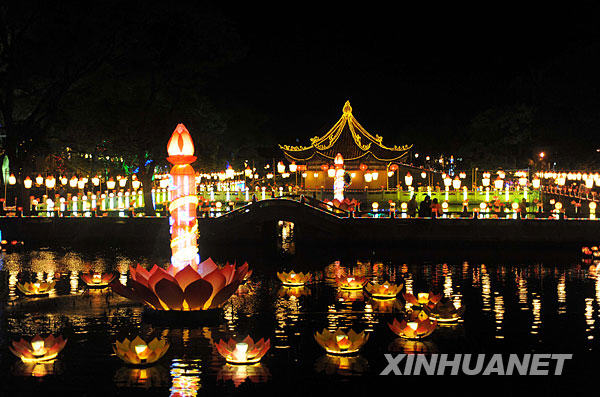 當(dāng)日,佛教名山浙江普陀山舉行“心燈·心愿”佛燈藝術(shù)展,千余盞體現(xiàn)傳統(tǒng)佛教文化藝術(shù)的彩燈點(diǎn)亮海島,通過燈光、音樂營造出普陀山“海天佛國、琉璃世界”的文化特質(zhì)。