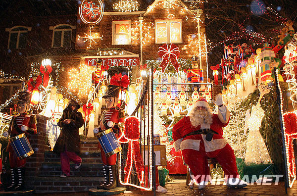 12月6日,一位裝扮成圣誕老人的居民在美國紐約的“戴克高地”社區(qū)歡迎游客。