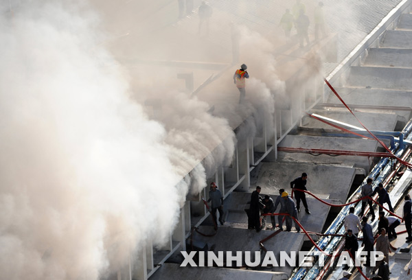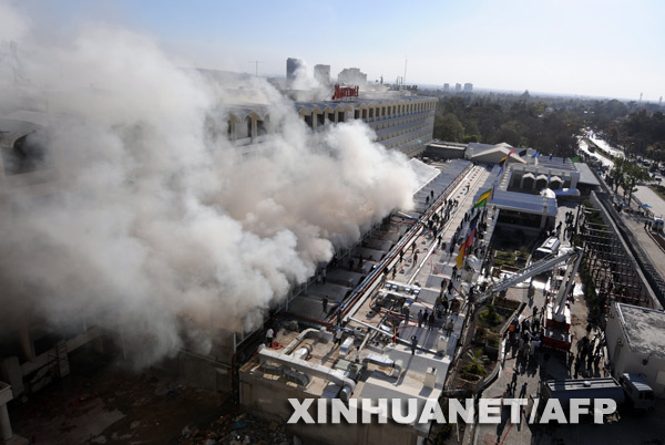 2月26日,在巴基斯坦首都伊斯蘭堡,消防員在發(fā)生火災(zāi)的萬(wàn)豪酒店滅火。新華社/法新