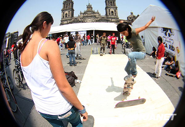 3月7日,在墨西哥首都墨西哥城的憲法廣場,女孩們進行滑板表演。當(dāng)天,世界各地的人們用不同的方式慶祝國際勞動婦女節(jié)。新華社發(fā)