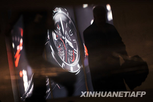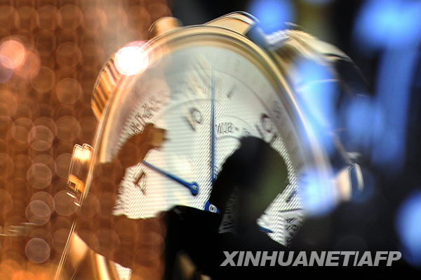 3月25日,在瑞士北部城市巴塞爾舉行的2009巴塞爾名表珠寶展媒體開(kāi)放日上,一名參觀者欣賞施華洛世奇(Swarovski)水晶表。新華社/法新 |