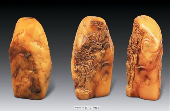 說(shuō)明:田黃石為壽山石中的極品,價(jià)格昂貴,皆以錢(qián)﹑兩為計(jì)算單位。自清以來(lái),極負(fù)盛名,爭(zhēng)相尋求視為瑰寶。所謂