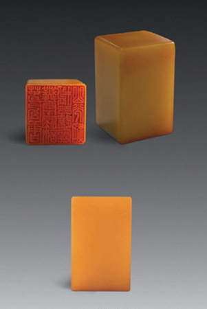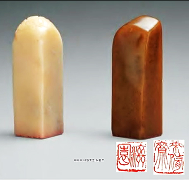 尺寸:高5cm、4.5cm 成交價(jià):RMB1,760,000 拍賣(mài)公司:北京翰海 日期:1999-07-05 說(shuō)明: 此二件田黃章,質(zhì)地勻靜純正,作工卓思精美,為傳世罕見(jiàn)佳制。