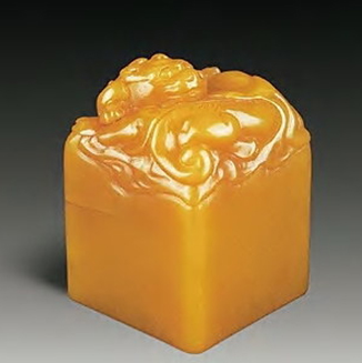 880,000 拍賣(mài)公司:上海敬華 日期:2001-12-15 說(shuō)明:田黃章料,方正大器,通體質(zhì)地細(xì)膩勻凈潤(rùn)澤,頂部浮雕云龍紋,龍圓眼外凸,鼻翼上翅,體態(tài)健碩,為田黃印章中難得的精品。