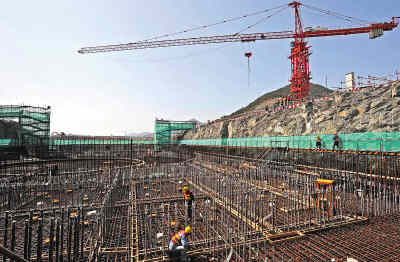 三門核電項(xiàng)目一期工程1號機(jī)組核島基礎(chǔ)施工現(xiàn)場。新華社記者:譚進(jìn)攝