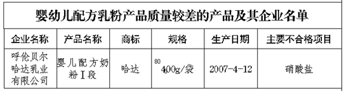 嬰幼兒配方乳粉:共抽查了全國(guó)60家企業(yè)生產(chǎn)的60種產(chǎn)品,產(chǎn)品抽樣合格率為95%。連續(xù)的國(guó)家監(jiān)督抽查促進(jìn)了企業(yè)質(zhì)量意識(shí)的提高,加強(qiáng)了質(zhì)量管理,使嬰幼兒配方乳粉產(chǎn)品質(zhì)量水平比2006年產(chǎn)品抽樣合格率提高了24.6個(gè)百分點(diǎn)。抽查中部分國(guó)家名牌、免檢和市場(chǎng)占有率較高的大型企業(yè)的產(chǎn)品,產(chǎn)品抽樣合格率為100%。部分規(guī)模較小企業(yè)產(chǎn)品存在的主要問題是硝酸鹽含量超標(biāo)。