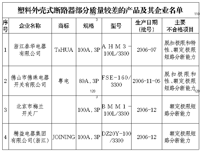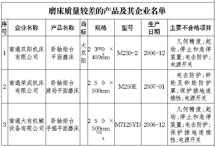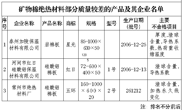 據(jù)了解,國(guó)家質(zhì)檢總局共抽查單相電能表產(chǎn)品42家企業(yè)生產(chǎn)的42種產(chǎn)品(不涉及出口),產(chǎn)品抽樣合格率為97.6%;抽查電動(dòng)助力車用密封鉛酸蓄電池產(chǎn)品35家企業(yè)生產(chǎn)的35種產(chǎn)品(不涉及出口),產(chǎn)品抽樣合格率為74.3%;抽查手持式電子信息產(chǎn)品質(zhì)量26家企業(yè)生產(chǎn)的27種產(chǎn)品(不涉及出口),產(chǎn)品抽樣合格率為74.1%;抽查鍋爐、壓力容器用鋼板產(chǎn)品15家企業(yè)生產(chǎn)的27種產(chǎn)品(不涉及出口),產(chǎn)品抽樣合格率為100%;抽查化學(xué)試劑氫氧化鈉、乙二胺四乙酸二鈉產(chǎn)品38家企業(yè)生產(chǎn)的50種產(chǎn)品(不涉及出口),產(chǎn)品抽樣合格率為96%;抽查集成電路卡產(chǎn)品32家企業(yè)生產(chǎn)的43種產(chǎn)品(不涉及出口),產(chǎn)品抽樣合格率為88.4%;抽查礦物棉絕熱材料產(chǎn)品41家企業(yè)生產(chǎn)的41種產(chǎn)品(不涉及出口),產(chǎn)品抽樣合格率為82.9%;抽查膜式燃?xì)獗懋a(chǎn)品30家企業(yè)生產(chǎn)的30種產(chǎn)品(不涉及出口),產(chǎn)品抽樣合格率為90%;抽查磨床產(chǎn)品23家企業(yè)生產(chǎn)的23種產(chǎn)品(不涉及出口),產(chǎn)品抽樣合格率為73.9%;抽查塑殼斷路器產(chǎn)品37家企業(yè)生產(chǎn)的37種產(chǎn)品(不涉及出口),產(chǎn)品抽樣合格率為62.2%。