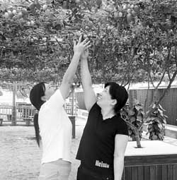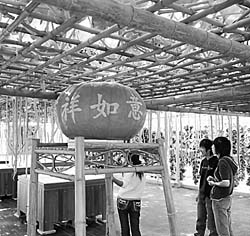 都市菜園籌建組負責(zé)人陳林兵指著棚下長出的一對對黃白兩種顏色的南瓜,風(fēng)趣地介紹說:“我們管它們叫‘金童’和‘玉女’,而那個,像不像香爐?”可不是,不經(jīng)指點,這里的不少奇瓜異蔬,真要從眼皮底下溜過。“這些形態(tài)奇異的蔬果,味道怎么樣?”我們禁不住好奇地問道!斑@間溫室里,種有200多種蔬果,這些品種及栽培技術(shù),是從國外引進的,比較符合這里土地沙質(zhì)、鹽堿特性,種植出來的蔬菜綠色、環(huán)保、高產(chǎn),味道也很不錯!标惲直卮鹫f。