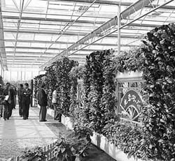 深秋時節(jié),驅(qū)車來到上海都市菜園。行前想象,既為菜園,不外乎廣闊的田地,連棟的大棚,里面長著一畦畦一壟壟的青菜?蓪嵕板娜徊煌阂婚g高大、寬敞的溫室暖房里,奇形怪狀的瓜果菜蔬不可勝數(shù)。這里的一根絲瓜,竟有1.8米長;南瓜一個重達150公斤;一株番茄展開枝葉,可以覆蓋60平方米,掛果1萬枚以上。還有墻面上立體栽培出的紅葉甜菜,營養(yǎng)液膜水中培育出的各類果蔬,五顏六色,美不勝收……