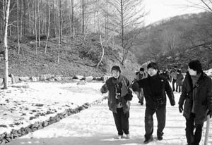 在這其中,歷經(jīng)40余載從枯山變成茂密森林的韓國忠州人登山“SK人才之林”給學(xué)生們留下了極其深刻的印象。 40年前,韓國的經(jīng)濟(jì)開始起飛之時,人登山的植物受到了大面積的破壞,土壤直接暴露在陽光和暴雨之下,水土流失十分嚴(yán)重。在一片質(zhì)疑和嘲笑聲中,韓國SK集團(tuán)會長崔鐘賢帶領(lǐng)著員工,在光禿禿的忠州人登山上種下一棵棵小樹苗,留下了堅定的腳印和希望。 40年后,故人已去,曾經(jīng)荒蕪的人登山變成了茂密的森林。“SK集團(tuán)通過這樣的活動既培養(yǎng)了員工關(guān)愛自然、保護(hù)環(huán)境的珍貴品質(zhì),也通過每年林業(yè)帶來的收益,包括果實、木材的收益設(shè)立獎學(xué)金,資助優(yōu)秀學(xué)生讀書,為國家培養(yǎng)了人才!盨K集團(tuán)相關(guān)負(fù)責(zé)人講述的有關(guān)“SK人才之林”的感人故事吸引了大家。 2月2日,我們一行從首爾出發(fā),1個多小時后來到韓國忠州人登山的“SK人才之林”。人登山位于韓國北部的天登山和南部的地登山之間。這里剛剛下過雪,環(huán)望四周,一片雪白;一排排的參天大樹,樹干沖向天空,在陽光的照耀下舒展著枝杈。迎面吹來陣陣細(xì)風(fēng)送來清新的空氣。“不可想象這滿山的樹林都是人工植栽的!”學(xué)生們一陣驚嘆。