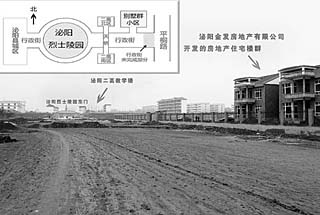 如果泌陽縣監(jiān)察局負責人的說法屬實,那么,為什么網(wǎng)絡上會出現(xiàn)“為建別墅群,扒掉烈士墳”的說法呢? 記者實地踏訪看到,目前擴建的行政街只通到別墅群所在小區(qū)門口,從該小區(qū)到平桐路(省道)只有路基無法通車。 家住附近侉子營的一位李姓村民說,行政街擴建的部分總長度不過2公里,到現(xiàn)在已經(jīng)修了一年多了,仍然沒有全部貫通!昂芏嗳硕荚趩枺盒姓謻|擴到底是正常的城市建設,還是為了方便建別墅的?” 由此可見,正是人們認為修路是為了建別墅、而修路占了烈士陵園,所以,就得出“建別墅占了烈士陵園”的結論。 但泌陽縣委有關部門負責人否認了為方便別墅群修路的說法。他說,該縣打通行政街東段依據(jù)的是縣城的整體規(guī)劃,并已經(jīng)報上級有關部門批準,其目的是“為解決縣東南部4個鄉(xiāng)鎮(zhèn)進城交通和泌陽第二高中近萬名師生出行困難問題”。至于行政街擴建未能全線貫通,那是因為有兩戶居民拒絕簽署拆遷補償協(xié)議。 這位負責人還說,擴建行政街時,有關部門在烈士陵園段特意采取了環(huán)島行駛的方式,陵園南北兩側實施單行,從而達到保護陵園的目的?h委、縣政府還將陵園門口的廣場以及東門的綠地劃歸烈士陵園,“不但沒有破壞陵園和烈士墓,反而使陵園面積增加4000多平方米,環(huán)境更美,群眾瞻仰更方便”。 但是,修建公路占去陵園土地是否違反《革命烈士紀念建筑物管理保護辦法》?是否經(jīng)過相關政府部門批準?對這些問題,泌陽方面未做明確答復。