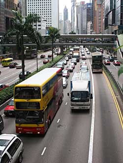 香港公路交通系統(tǒng)包括專營(yíng)巴士和非專營(yíng)巴士、公共小型巴士、的士等,其客運(yùn)量約占公共交通載客量的64%。 香港的專營(yíng)巴士大多為裝有空調(diào)和咨詢電視等設(shè)備的雙層巴士,有近600條線路服務(wù)于各商業(yè)區(qū)、住宅區(qū)、工業(yè)區(qū)、新市鎮(zhèn)等,客運(yùn)量占公共交通日載客量的37%。香港允許讓節(jié)省路面的專營(yíng)巴士?jī)?yōu)先使用路面,從1974年開(kāi)始在港島實(shí)施巴士專用線計(jì)劃,禁止其他車輛在日間使用某些行車線。1979年首個(gè)交通政策白皮書發(fā)表后,專用線計(jì)劃推廣至其他地區(qū)。 非專營(yíng)巴士主要是為游客、屋村居民、雇員和學(xué)生提供定點(diǎn)專線服務(wù)。短線小巴則主要用于交通連接點(diǎn),以完成主干道路末梢和支線的交通。 香港的出租車采取分區(qū)管理,港島與九龍的出租車可通行全港,而新界、大嶼山的的士只能服務(wù)本區(qū)。 除了巴士外,地鐵、有軌電車、水上公共交通等的有效補(bǔ)充也保證了香港公交系統(tǒng)的四通八達(dá)。 香港的地鐵現(xiàn)有七條線路,車上裝有空調(diào)裝置和電子站牌顯示設(shè)備,還不時(shí)用廣東話、英語(yǔ)和普通話報(bào)站名,是香港上班族最喜愛(ài)的交通工具,日均載量為240萬(wàn)人次。其中,機(jī)場(chǎng)快線連接市區(qū)和新的香港國(guó)際機(jī)場(chǎng),載客量大、快捷、方便。而輕便鐵路則專為新市區(qū)而建,來(lái)往于香港新界的元朗與屯門碼頭之間,班次頻密,舒適快捷。 香港還很注重與內(nèi)地的連接,九廣東鐵是從九龍南端穿過(guò)九龍、新界到達(dá)深圳羅湖并北上廣州的古老路線,是香港連接內(nèi)地的主要通道。