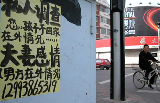 《民事訴訟法》規(guī)定誰(shuí)主張誰(shuí)舉證,用老百姓的話講就是需要自己拿證據(jù),這使民間調(diào)查機(jī)構(gòu)在龐大的市場(chǎng)需求下一步步孕育、催生出來(lái)。然而如今的許多私家偵探機(jī)構(gòu)為了獲得暴利,不得不在法律的邊緣行走。而關(guān)于私家偵探的存在是弊大于利、還是利大于弊的爭(zhēng)論始終沒(méi)有間斷。 11月中旬,記者在沈陽(yáng)市私家偵探機(jī)構(gòu)比較集中的和平區(qū)調(diào)查時(shí),碰巧遇到一位從事“調(diào)查員”工作時(shí)間較長(zhǎng)的徐某。談及“業(yè)務(wù)”,他把私家偵探的業(yè)務(wù)歸納為民事和商業(yè)兩類(lèi)。民事包括婚外戀調(diào)查、親子鑒定和尋人等。但現(xiàn)在最熱門(mén)的是幫顧客調(diào)查上司的愛(ài)好和隱私,掌握了上司的這些把柄,很多人就可以“心里有底”。 徐某還向記者透露,這個(gè)行業(yè)雖競(jìng)爭(zhēng)殘酷,卻可獲暴利。比如婚外情調(diào)查,雖然起步價(jià)就要1萬(wàn)元,但許多人還是趨之若鶩,最高一次有人出價(jià)10萬(wàn)元。 “至于商業(yè)調(diào)查這一塊,以討債的居多,也有不少人花大錢(qián)要買(mǎi)工程或項(xiàng)目招投標(biāo)的底價(jià)和對(duì)手價(jià)格之類(lèi)。但法律有規(guī)定,這種行為最高可判12年,大的調(diào)查所一般不敢接,一些小所還是有接的!毙炷尺@樣講述著行業(yè)的內(nèi)幕。在暗訪中,記者了解到了沈陽(yáng)調(diào)查行業(yè)的基本價(jià)格。尋人調(diào)查:4000元/人;婚外情調(diào)查10000元/人;查銀行存款:3000元/賬號(hào);查手機(jī)記錄:2000元/部;查電話地址:1000元/部;查房產(chǎn):3000元/套…… 記者還注意到,幾乎所有的調(diào)查事務(wù)所都有攝像機(jī)、偷拍機(jī)、竊聽(tīng)器等器材。偷拍機(jī)的針孔攝像頭是最先進(jìn)的。調(diào)查人員在保持聯(lián)絡(luò)時(shí),經(jīng)常使用手機(jī)和固定頻率的對(duì)講機(jī)。一般的調(diào)查事務(wù)所都擁有兩輛以上的車(chē)輛。 12月2日,在沈陽(yáng)市皇姑區(qū)五一商店附近的一處民宅墻邊,記者發(fā)現(xiàn)了多個(gè)偵探機(jī)構(gòu)所發(fā)布的業(yè)務(wù)廣告。走到跟前細(xì)看,廣告內(nèi)容全是調(diào)查婚外情、跟蹤之類(lèi)的業(yè)務(wù)。其實(shí),我國(guó)公民的個(gè)人隱私受法律保護(hù),跟蹤業(yè)務(wù)應(yīng)屬偵察工作,作為私家偵探機(jī)構(gòu)并無(wú)此權(quán)力。承諾能為客戶(hù)做此業(yè)務(wù),其實(shí)就是在表白自己可以無(wú)事不做,只要你出錢(qián)。這顯然已超出法律底線。