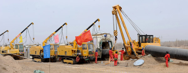 西氣東輸二線甘肅段加緊施工。新華社記者:韓傳號(hào) 攝