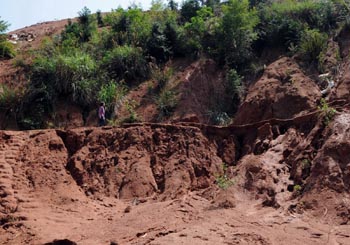 平南縣六陳鎮(zhèn)六合村,一非法稀土礦開(kāi)采點(diǎn)造成嚴(yán)重的水土流失。 |