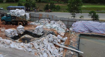 非法開(kāi)礦者運(yùn)來(lái)的硫酸銨等原料。新華社記者 吳小康